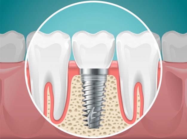 Cirugia de colocacion de implante de titanio + controles + apertura + corona de porcelana definitiva